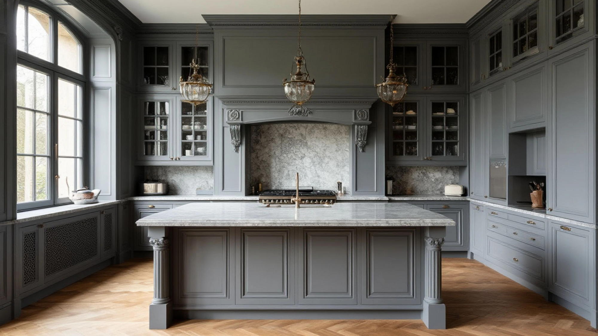 Кухни в стиле барокко – это воплощение элегантности, роскоши и гармонии, а кухня в сером цвете "Аурелия" от компании "Мебель Нашел" представляет собой идеальное сочетание классического великолепия с современными технологиями и функциональностью. С первых мгновений, когда вы входите в помещение, ощущается особая атмосфера, созданная плавными линиями фасадов, изысканными деталями и глубокими оттенками серого, которые создают впечатление спокойствия и уюта, одновременно подчеркивая статус и изысканный вкус хозяев.