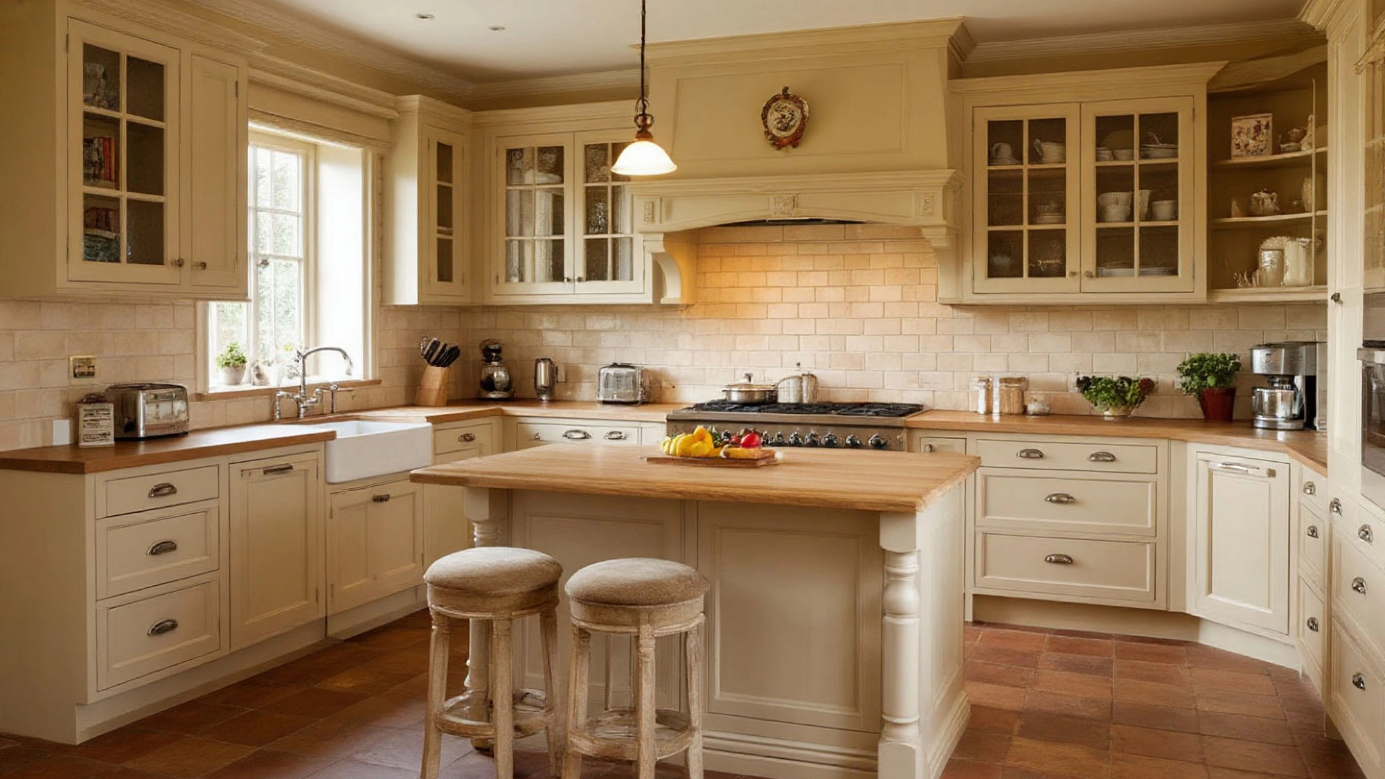 Стиль английской кухни проявляется в сочетании классических элементов и современных решений. Мягкий бежевый оттенок фасадов позволяет создавать различные декоративные комбинации, сочетая традиционные молдинги и современные стеклянные вставки, открытые полки и встроенные системы хранения. Это делает кухню одновременно функциональной и эстетически привлекательной, подчёркивая гармонию между прошлым и настоящим.