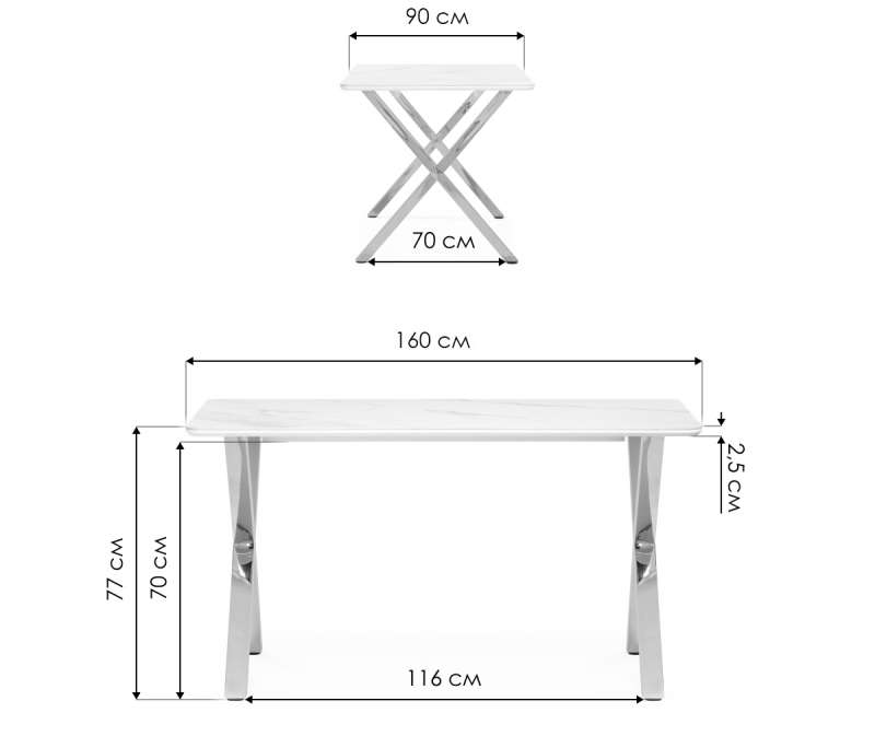 Керамический стол Селена 3 160х90х77 белый мрамор / золото (90x77).