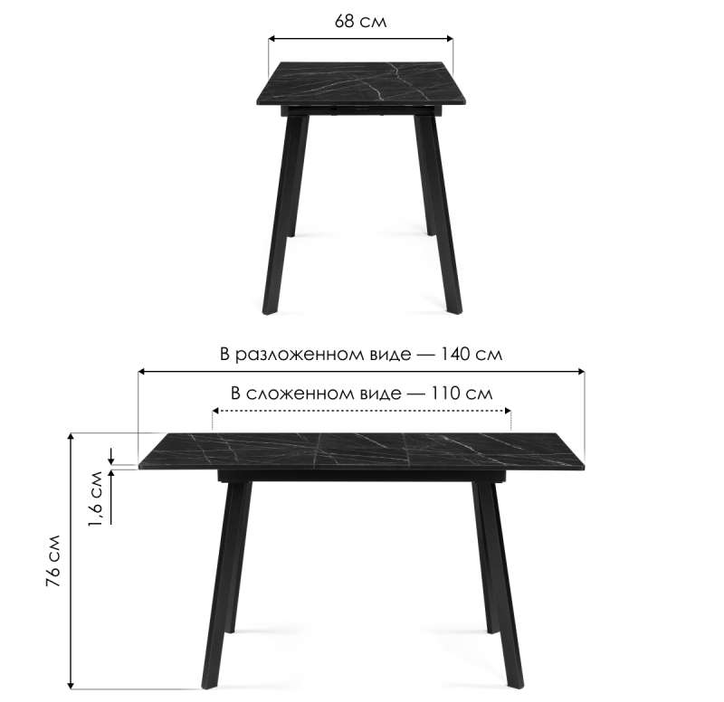 Стол деревянный Агни 110(140)х68х76 файерстоун / черный матовый (68x76).