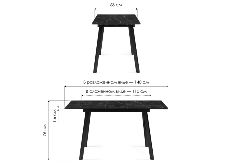 Длина стола в разложенном виде