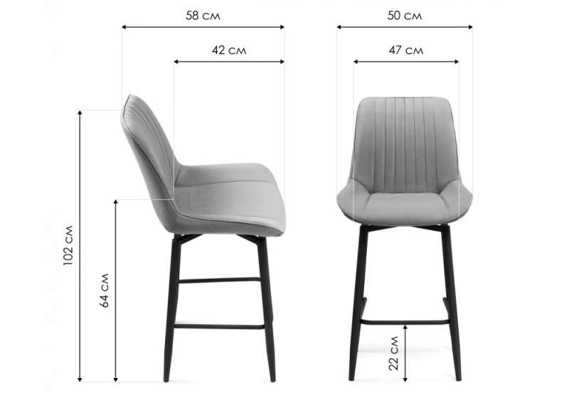 Высота спинки: 39 см. Высота подножки: 22 см.